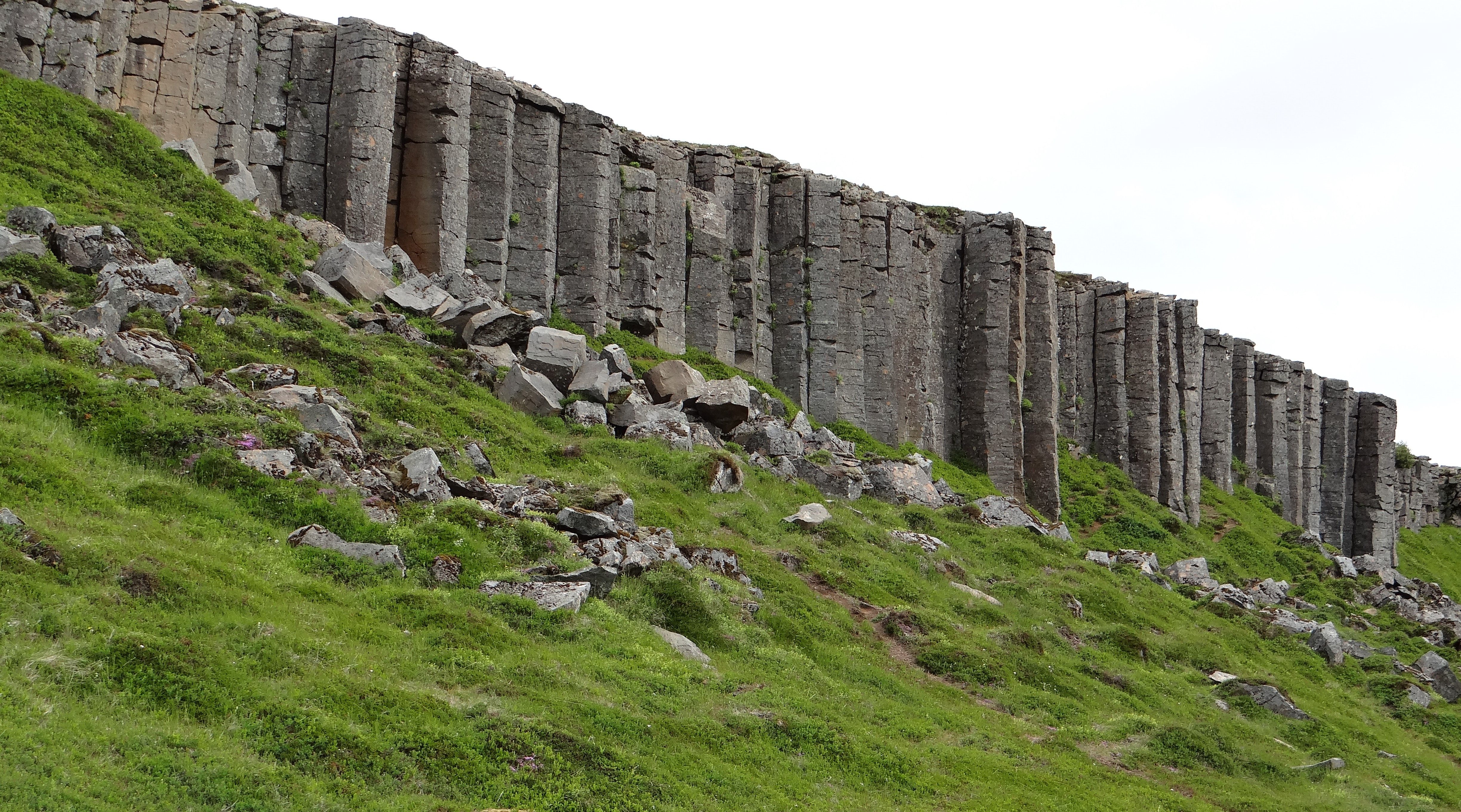 As you enter the Snaefellsnes Peninsula from Reykjavik, the Gerðuberg cliffs make a spectacular first impression. These perfectly formed hexagonal basalt columns stretch for about half a kilometer and reach heights of up to 14 meters.